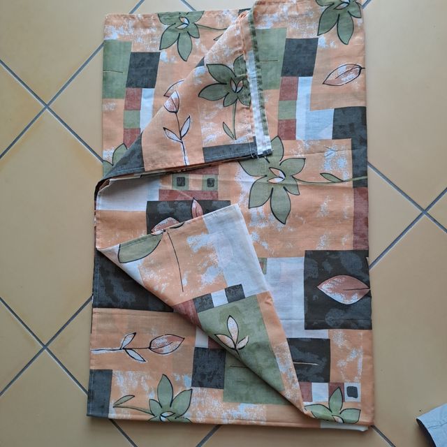 Tovaglia stampata con motivo vintage. In cotone. Misure 180x140 cm Nuova, mai usata.