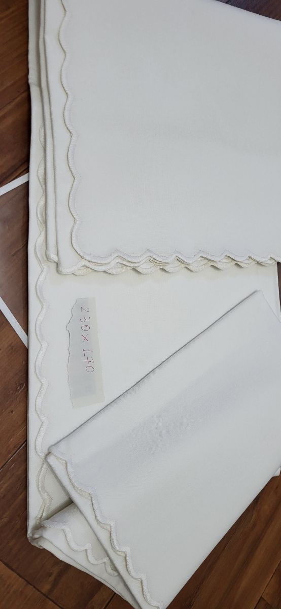 Dettagli del prodottotovaglia vintage facente parte del corredo ,in puro cotone con smerlo eseguito a macchina, mis.230 per 170 mai utilizzata mandata in lavanderia prima di mettere in vendita perché conservata da un po.