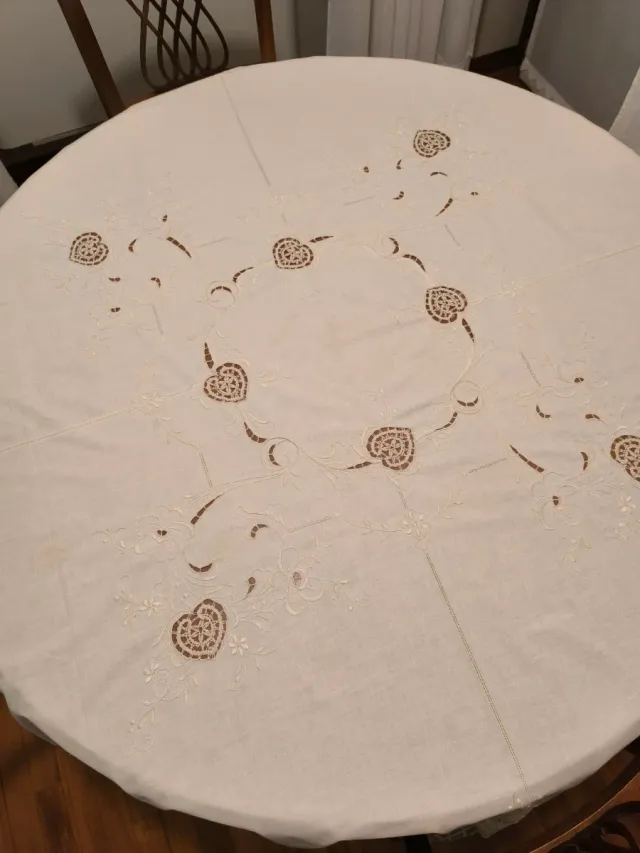 Tovaglia rotonda ricamata con 8 tovaglioli