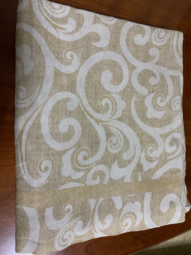 Tovaglia da 12 persone, color panna e champagne, in cotone e poliestere. Cm 140x240. Nuova, in confezione originale