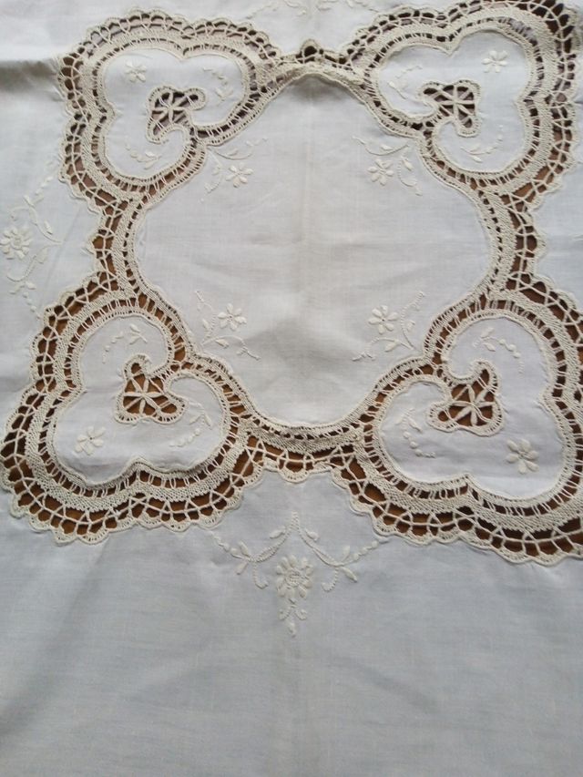tovaglietta o centrotavola ricamata a mano ecru' in finissimo pizzo rinascimento a mano misura cm85x85