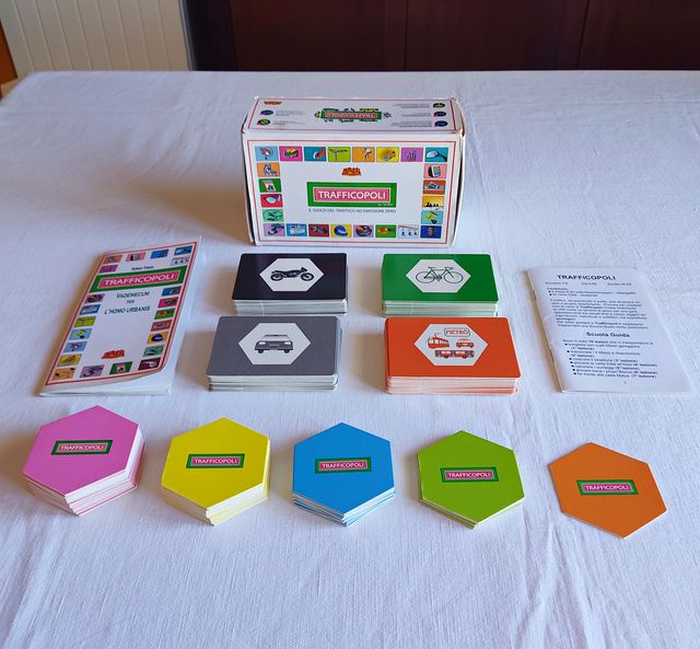 Dettagli del prodottoTrafficopoli è un divertente e istruttivo gioco da tavolo per ragazzi e adulti che vogliono scoprire insieme come muoversi in città senza inquinare. In abbinamento c'è anche il libro, un Vademecum per l’homo urbanis, grazie al quale sarà possibile trasferire il gioco nella realtà!