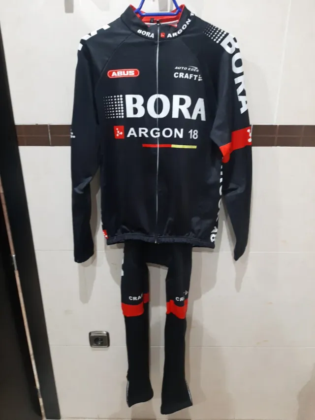 Dettagli del prodottoTuta da ciclismo BORA ARGON 18. - Maglia a manica lunga. - Pantaloncini lunghi. - Design in nero con dettagli rossi e bianchi. - Loghi di BORA, ARGON 18, ABUS e CRAFT visibili. La descrizione è stata tradotta automaticamente.