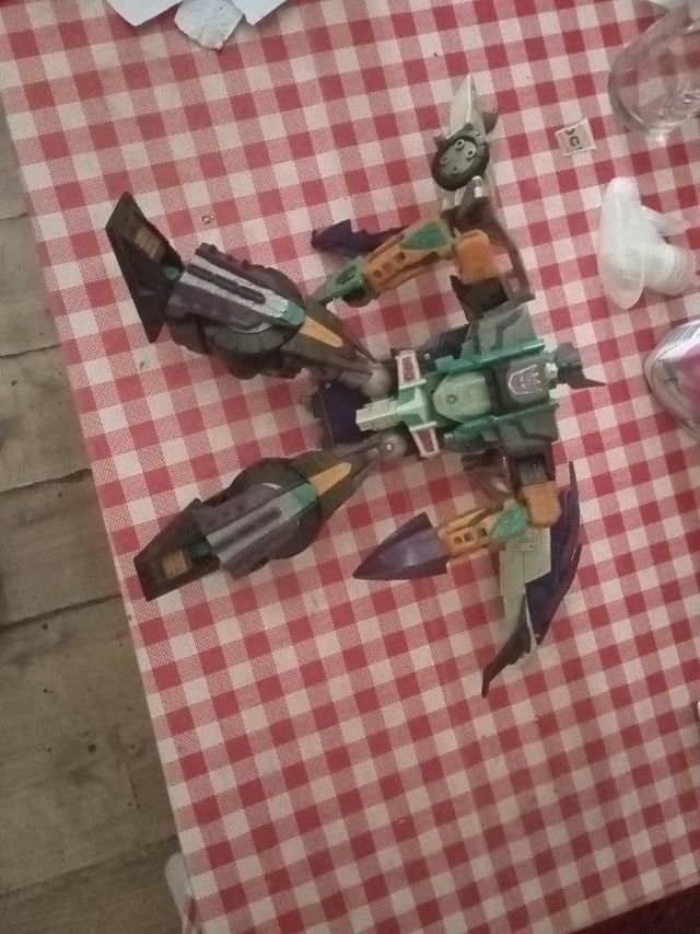 Action figure di Transformers Cybertron Megatron. - Dettagli in verde e arancione. - Parti viola e grigie.
