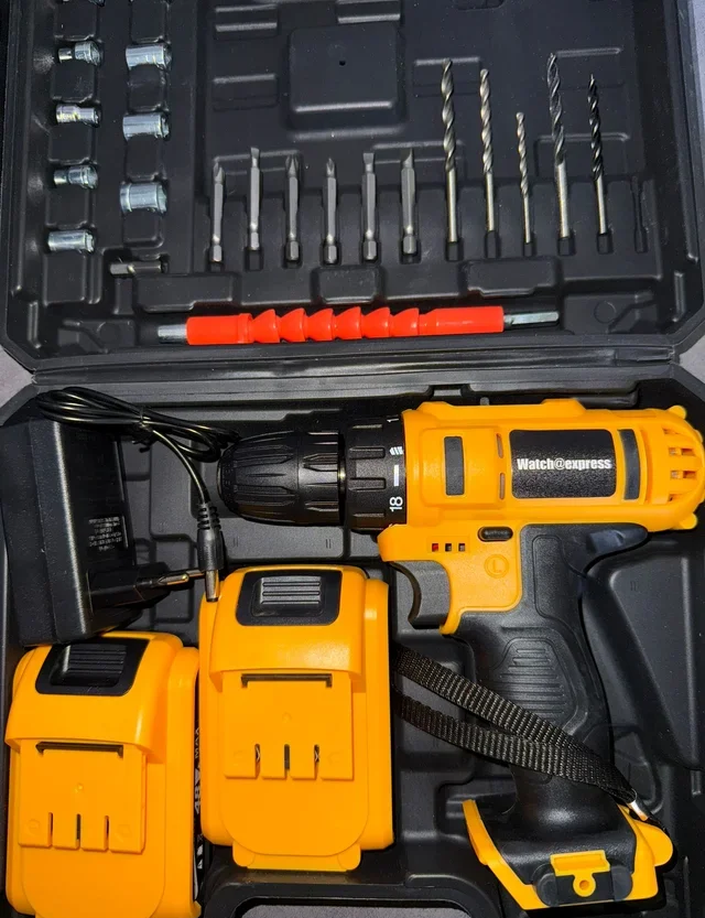 Dettagli del prodottoTrapano avvitatore completo di accessori, ideale per lavori di fai-da-te e professionali. Il colore giallo brillante lo rende facilmente individuabile.
