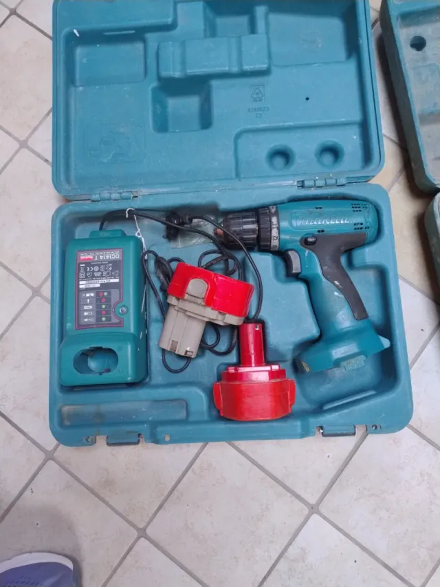 Dettagli del prodottoTrapano Makita completo di tutti i suoi accessori, pronto all'uso.