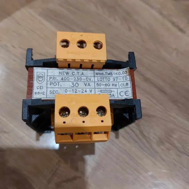 Dettagli del prodottoTrasformatore di marca NEW C.T.A. con potenza di 30 VA.