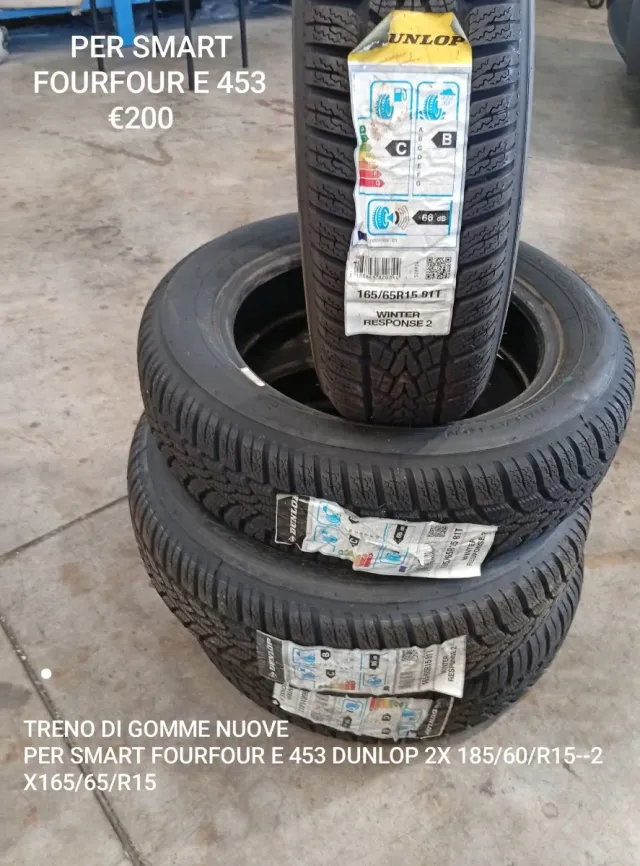 Vendo treno di 4 gomme invernali Dunlop Winter Response 2, nuove, per Smart Fourfour E 453. - Misura: 165/65 R15 91T - Prezzo: €200 - Condizioni: Nuove