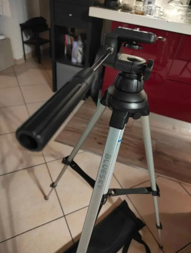 Treppiedi in alluminio e plastica. - Altezza regolabile. - Testa orientabile. - Ideale per fotografia e video.