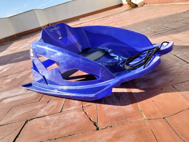 Dettagli del prodottoIn vendita trineo infantile in ottime condizioni, ideale per godersi la neve. Realizzato in plastica resistente, leggero e durevole. Dotato di sedile con cintura di sicurezza, schienale alto e corda frontale per tirare il trineo con facilità o aiutare il bambino in pendenze.