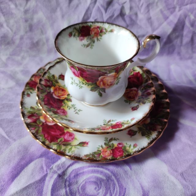 Dettagli del prodottoVendo trio royal Albert Old Country Roses composto da tazzina e piattino caffè e piatto dolce diametro 16 cm.
