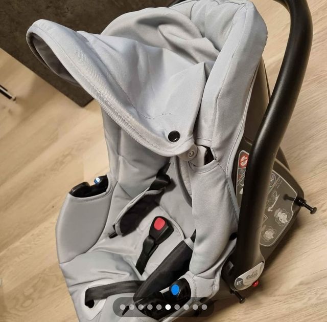 Sistema Trio Cam Fluido, un conjunto versátil para el paseo. - Capazo con capota. - Silla de paseo. - Portabebé. - Estructura en color gris y negro.