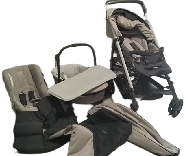 Set trio per passeggino Inglesina, completo di tutti gli accessori. - Navicella. - Seggiolino auto. - Passeggino.