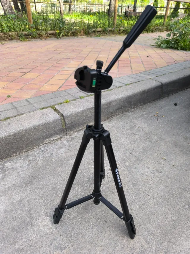 Dettagli del prodottoTreppiede nero della marca Polaroid, ideale per fotocamere. - Supporto con livella a bolla. - Manico di regolazione. - Gambe regolabili (3 posizioni) La descrizione è stata tradotta automaticamente.