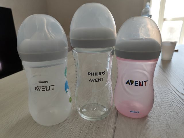 Vendo tris biberon di cui uno è di vetro. Vendibili anche separatamente