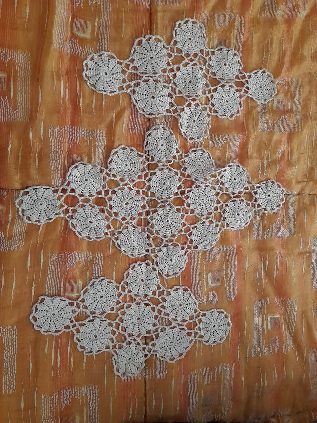 tris di centrini fatti a uncinetto a mano,uno grande e due piccoli