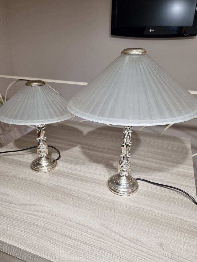 tris lumi Ottaviani funzionanti con base argento e coppe in vetro satin