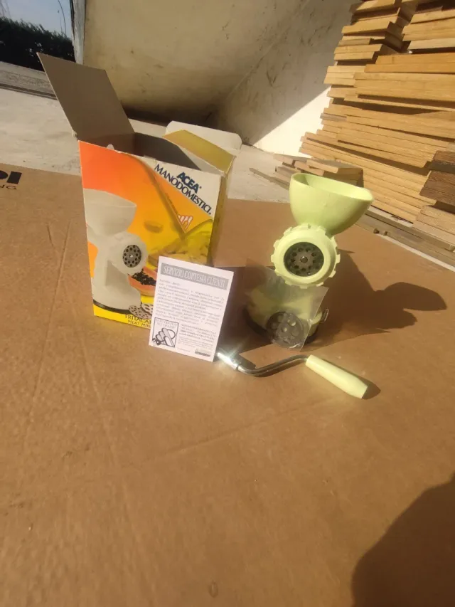 Dettagli del prodottoTritacarne manuale ACEA Manodomestici, ideale per la preparazione di carne macinata in casa.