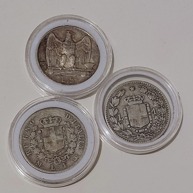 Dettagli del prodottoVendo un bell tritico di monete Regno Nonno , Figlio e Nipote . Emanuele ll , Umberto I e Emanuele lll .