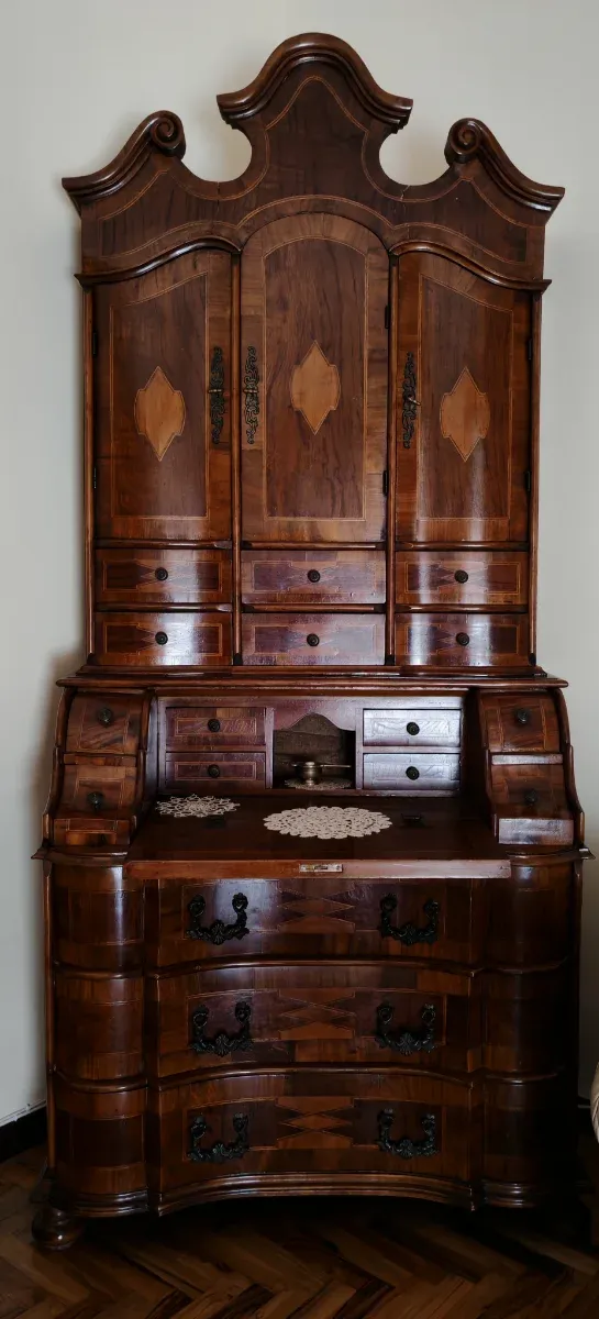 Trumone in noce con intarsi in radica di noce