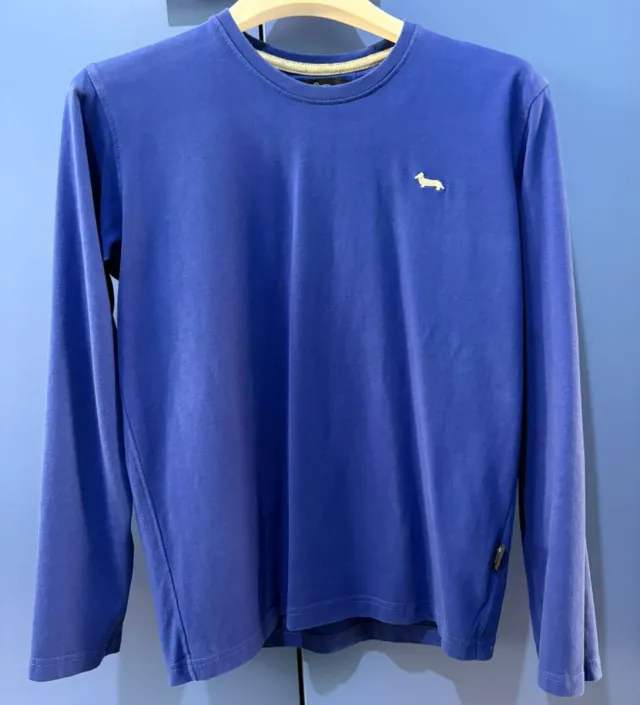 Maglione a maniche lunghe da bambino, di colore blu intenso. Presenta un piccolo cane ricamato sul petto. - Girocollo - Maniche lunghe - Dettaglio ricamato