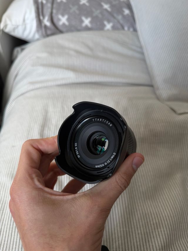 Obiettivo TTArtisan 35mm f/1.8 AF autofocus per fotocamere Sony con attacco E. Include paraluce. Condizione: perfetta.