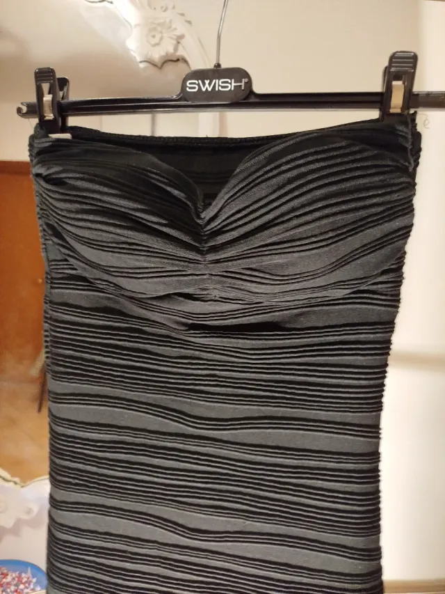 Tubino nero drappeggiato.Legg scucito sotto le asc