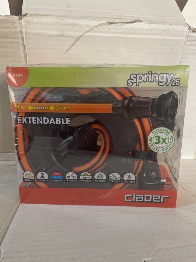 Dettagli del prodottoTubo da giardinaggio estensibile da 8 a 25 metri completo di accessori, ancora imballato Misure del prodotto