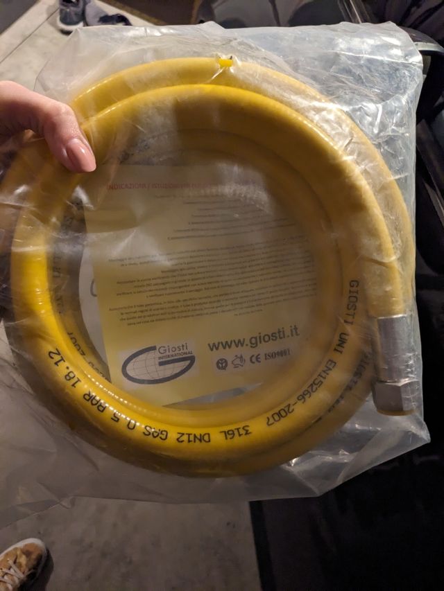 Dettagli del prodottoTubo flessibile gas UNI EN15266-2007 GPL METANO femmina femmina 400cm 1/2" Misure del prodotto