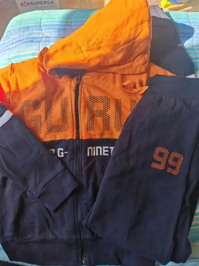 Dettagli del prodottoCompleto tuta per bambino firmato Guru, composto da felpa con cappuccio e pantaloni.