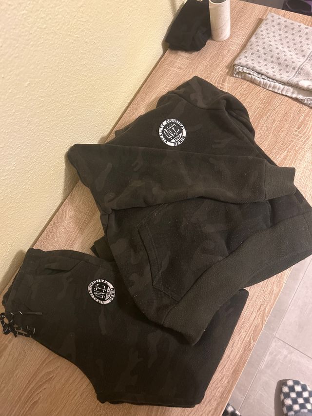 Set tuta bimbo in felpa con fantasia camouflage. - Felpa morbida e calda. - Pantaloni con laccetti in vita. - Logo circolare bianco sul petto e sulla gamba.