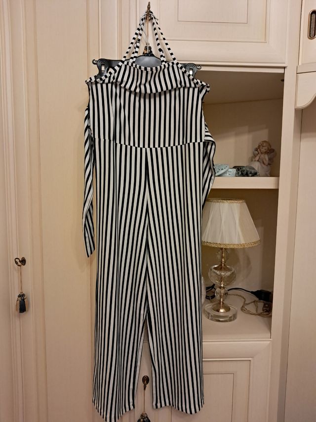 Dettagli del prodottoBellissima tuta jumpsuit del marchio Mayoral, a righe bianche e nere.
