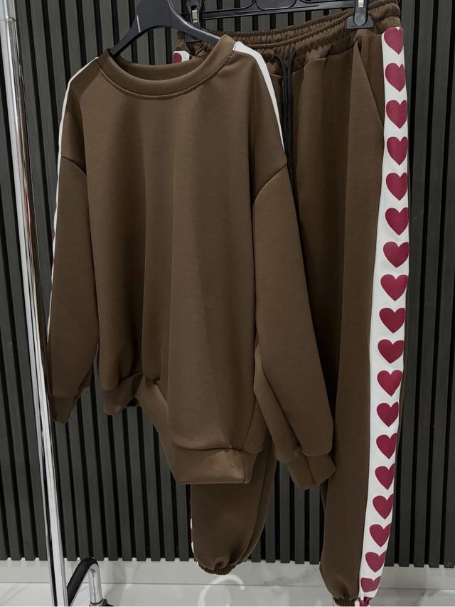 Tuta marrone con banda a cuori