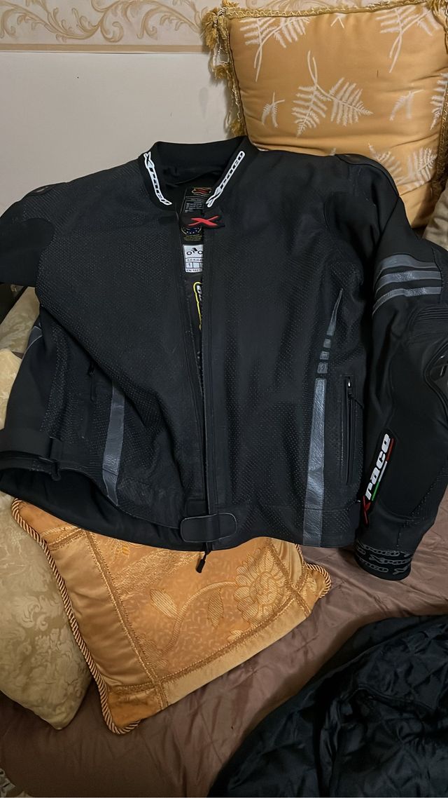 Dettagli del prodottoTuta da moto in pelle Xrace, ideale per la guida sportiva. Presenta un design moderno e dettagli curati.