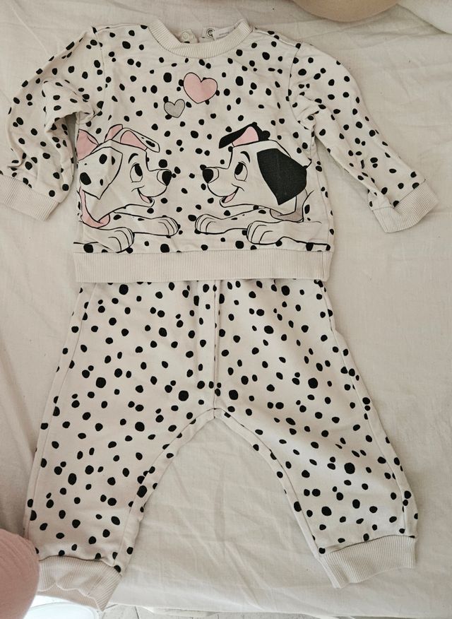 Dettagli del prodottoComodo set composto da felpa e pantaloni per neonata, con stampa dei personaggi Disney dei 101 Dalmata. Taglia 6/9mesi 68cm Cotone Garzato