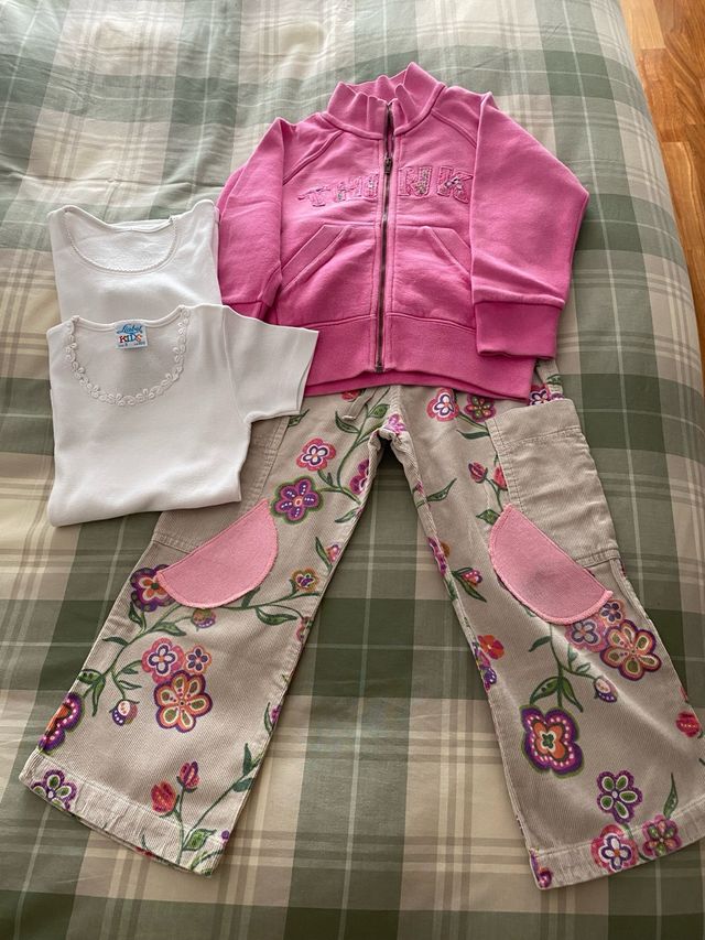 Dettagli del prodottoCompleto composto da tuta con fantasia floreale e due magliette bianche felpate all interno