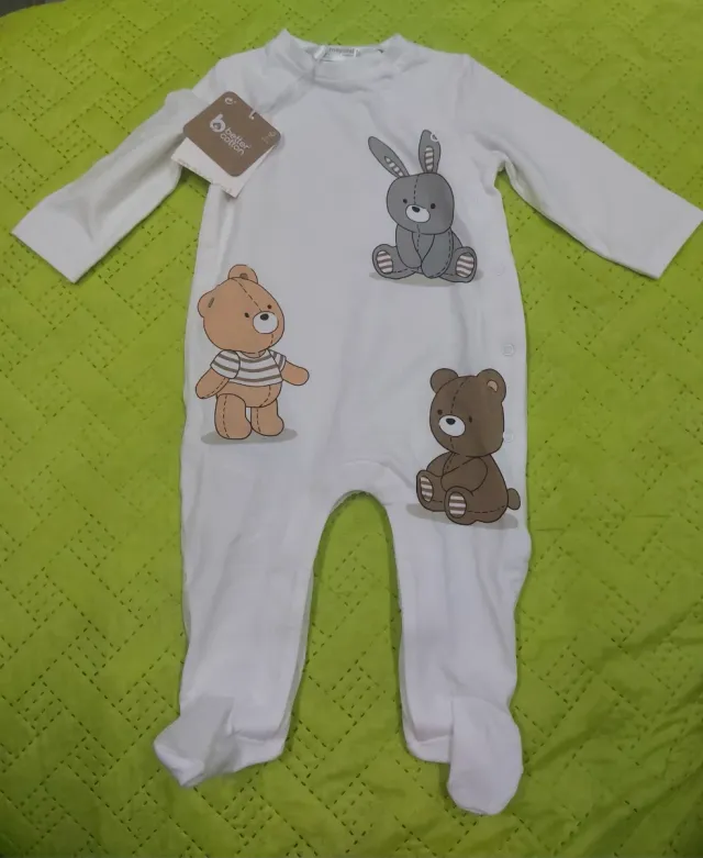 Tutina in cotone Mayoral, nuova, taglia 2-4 mesi. - Fantasia con orsetti e coniglietto. - Chiusura con bottoncini. - Piedini integrati.