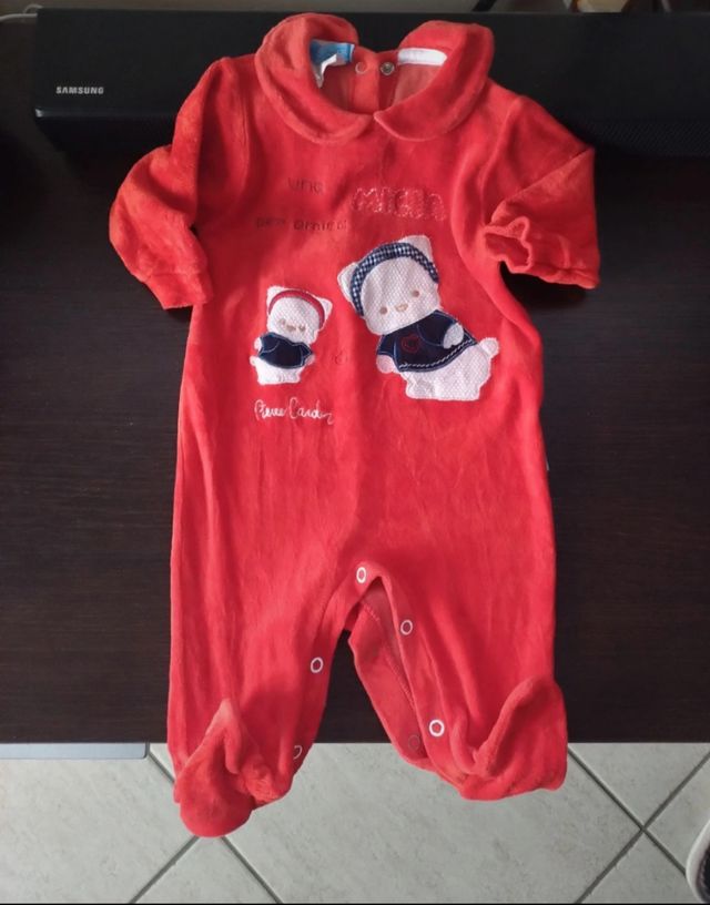 Coppia tutina una taglia 0-1 e l'altra taglia 1 colore rosso condizioni buone. Una soltanto marca Pierre Cardin. Misura 50 cm circa
