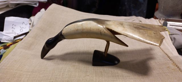 uccello scolpito oggetto vecchio su un corno osso euro 20 ha la coda leggermente sbeccata