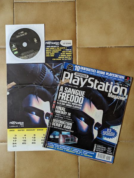 Rivista completa Ufficiale PlayStation Magazine 48 con la demo originale euro demo 59 e il calendario. Quest'ultimo è danneggiato e riparato con lo scotch.