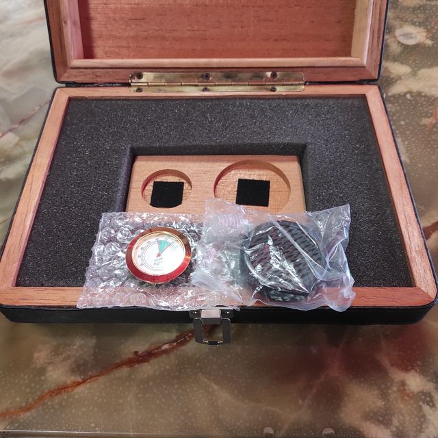 Dettagli del prodottoVendo umidificatore mai usato silver match. Come si può vedere dalle foto, è composto da una valigetta in pelle contenente l'igrometro e l'umidificatore. Non è mai stato usato, ma presenta piccolissimo difetto sulla valigia, mostrato in foto.