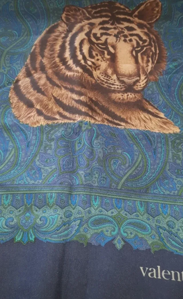 Valentino Sciarpa Seta Tigre Blu Marrone