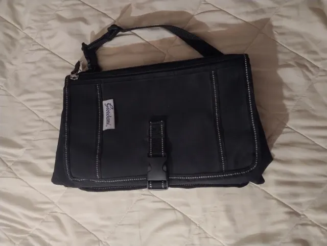 Pratica valigetta fasciatoio portatile Giordani, ideale per i cambi fuori casa. Colore nero. Chiusura con fibbia. Tracolla regolabile. Mai usato! Nuovo!