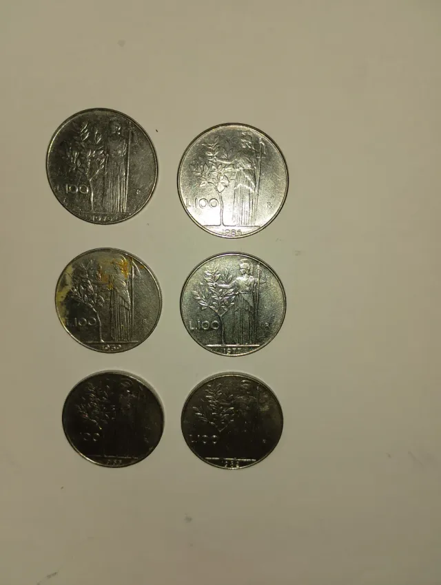 monete da collezione - Monete in metallo. - Dettaglio della figura femminile con ramo d'ulivo. - Anni di conio variabili.
