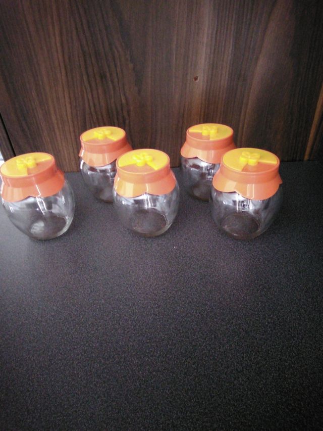 vasetti porta spezie o altro, in vetro con coperchio disegno fiore in plastica. Coperchio rotante per diversi dosaggi
