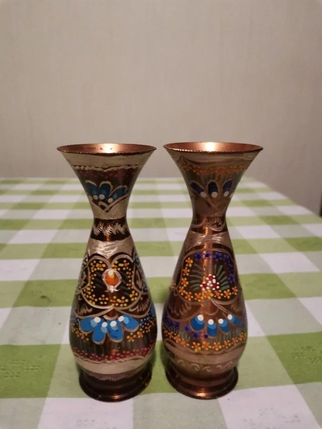 Dettagli del prodottoVasetti in rame con decorazioni lavorate a mano, altezza 13 cm