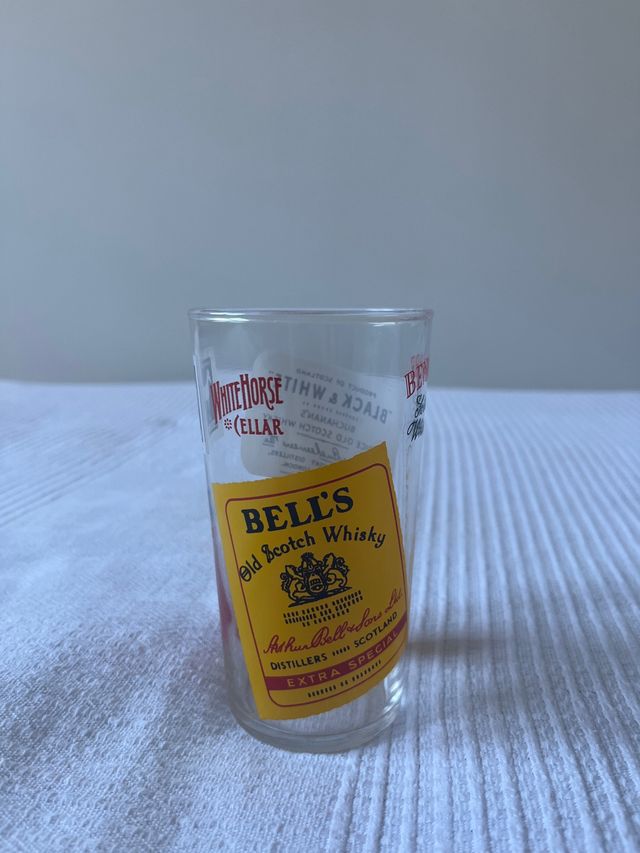 Vaso in vetro con il caratteristico design di Bell's Old Scotch Whisky.