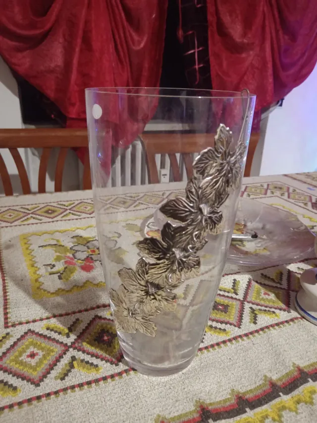 Vaso Bohemia Vetro Metallo Foglie