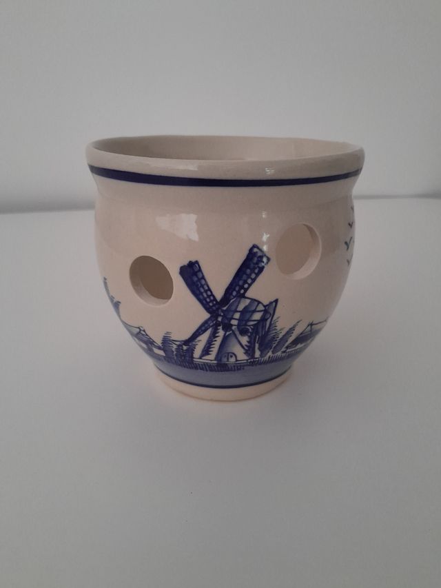 Dettagli del prodottoBellissimo vaso porta bulbi stile vintage Delft Blue e bianco, in gres smaltato.