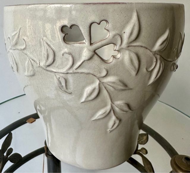 Dettagli del prodottoVaso in Ceramica. Vaso bianco in ceramica con intarsi della ditta What's Vincent Cadeaux. Il vaso e' nuovo si trova in ottimo stato, i segni che si vedono in foto sono propri del tipo di lavorazione a mano, contiene sul fondo il marchio del produttore. Ha dimensione : altezza 19 cm e diametro 20 cm. Sarà accuratamente imballato e spedito.